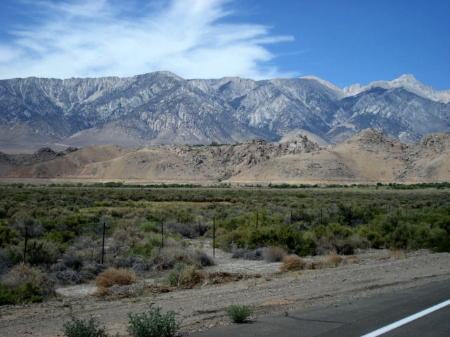 Lone Pine Peak and Mount Whitney from turnout on Highway 136 |