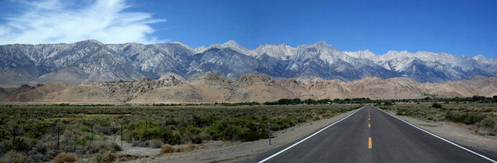 Lone Pine Peak, Mount Whitney and Mount Russell from Highway 136 |